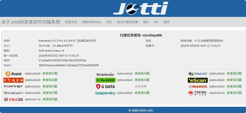 经JOTTI测试,文件安全。如果介意的话,自行测试。