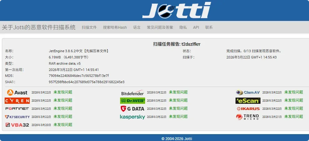 经JOTTI测试,文件安全。如果介意的话,自行测试。