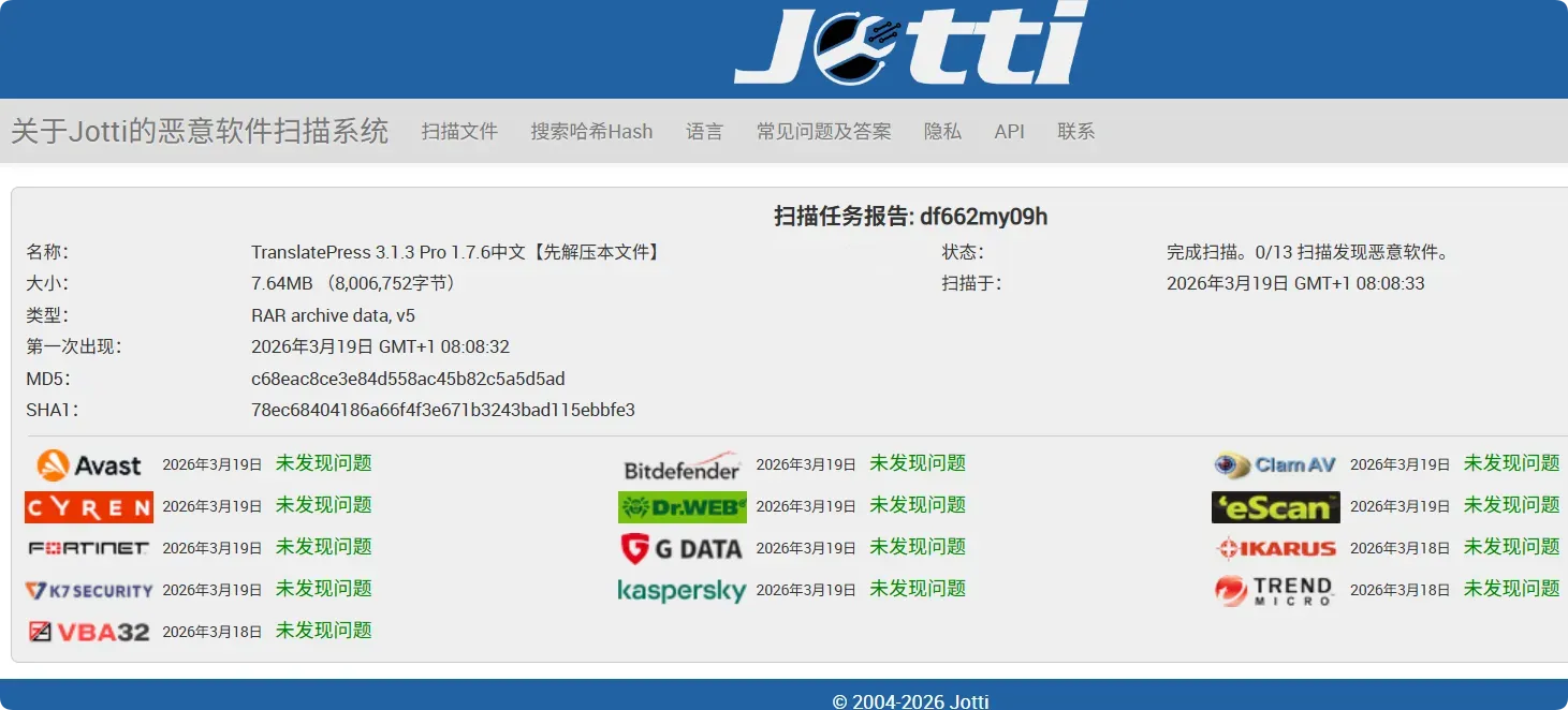 经JOTTI测试,文件安全。如果介意的话,自行测试。